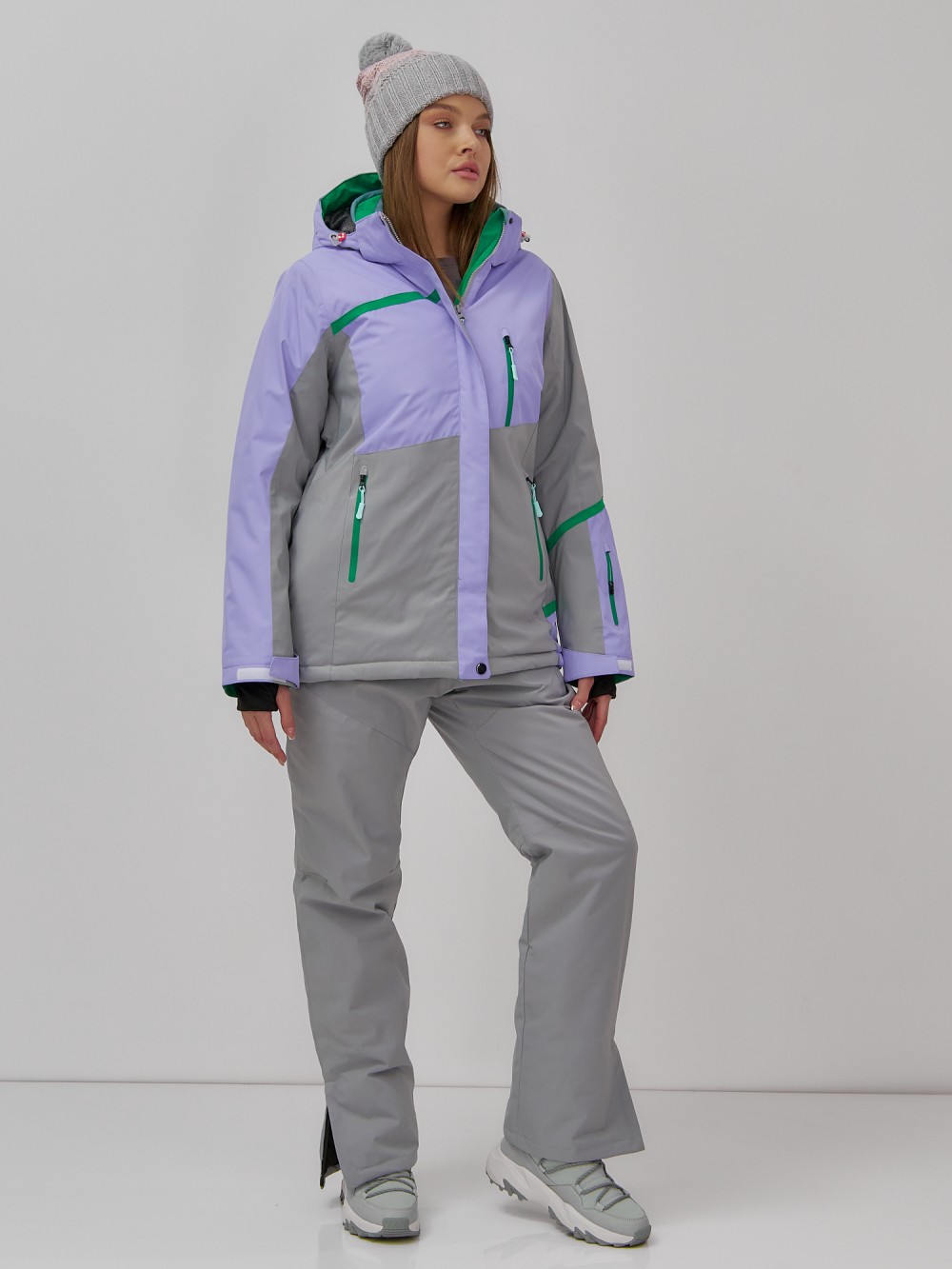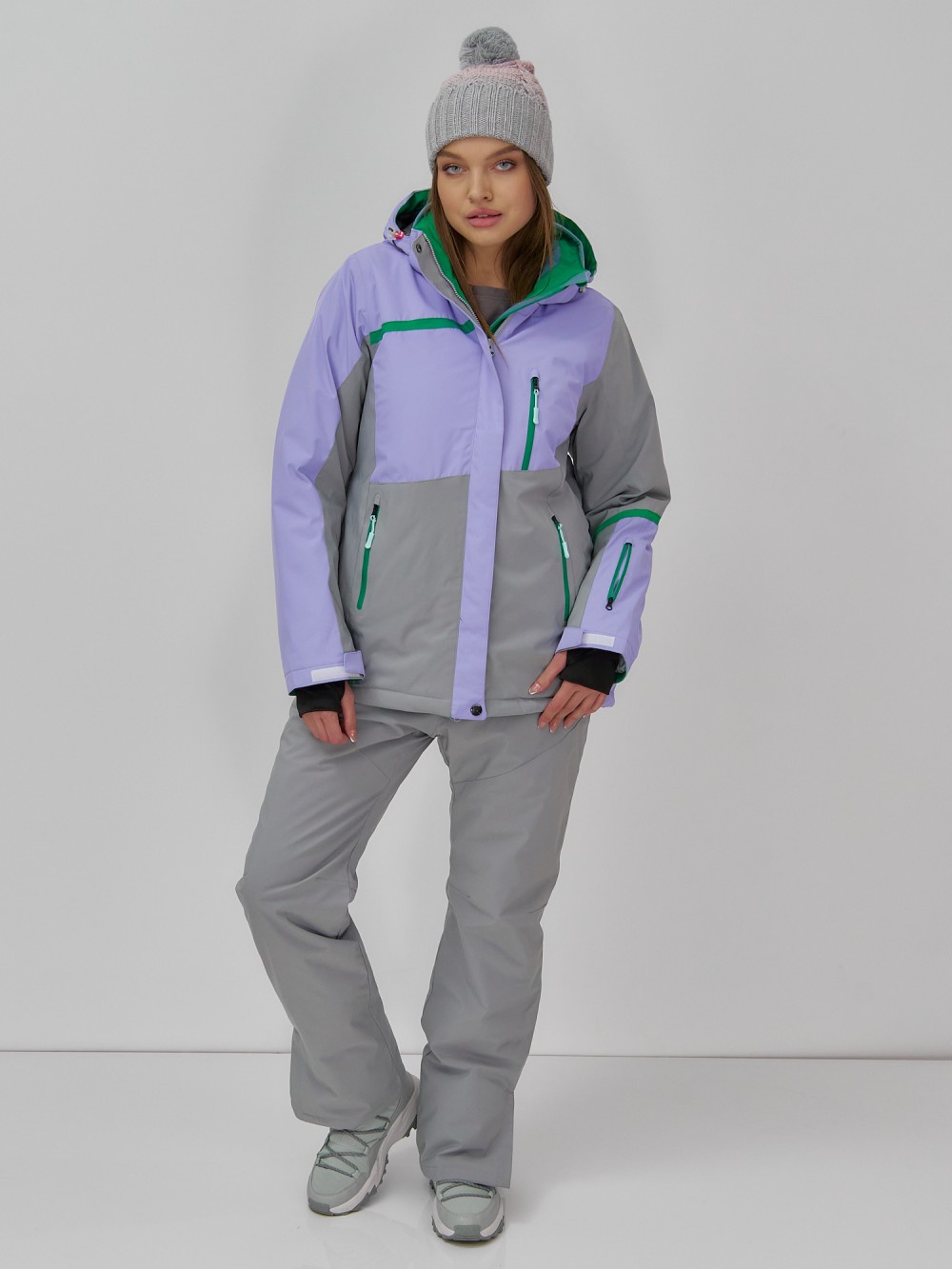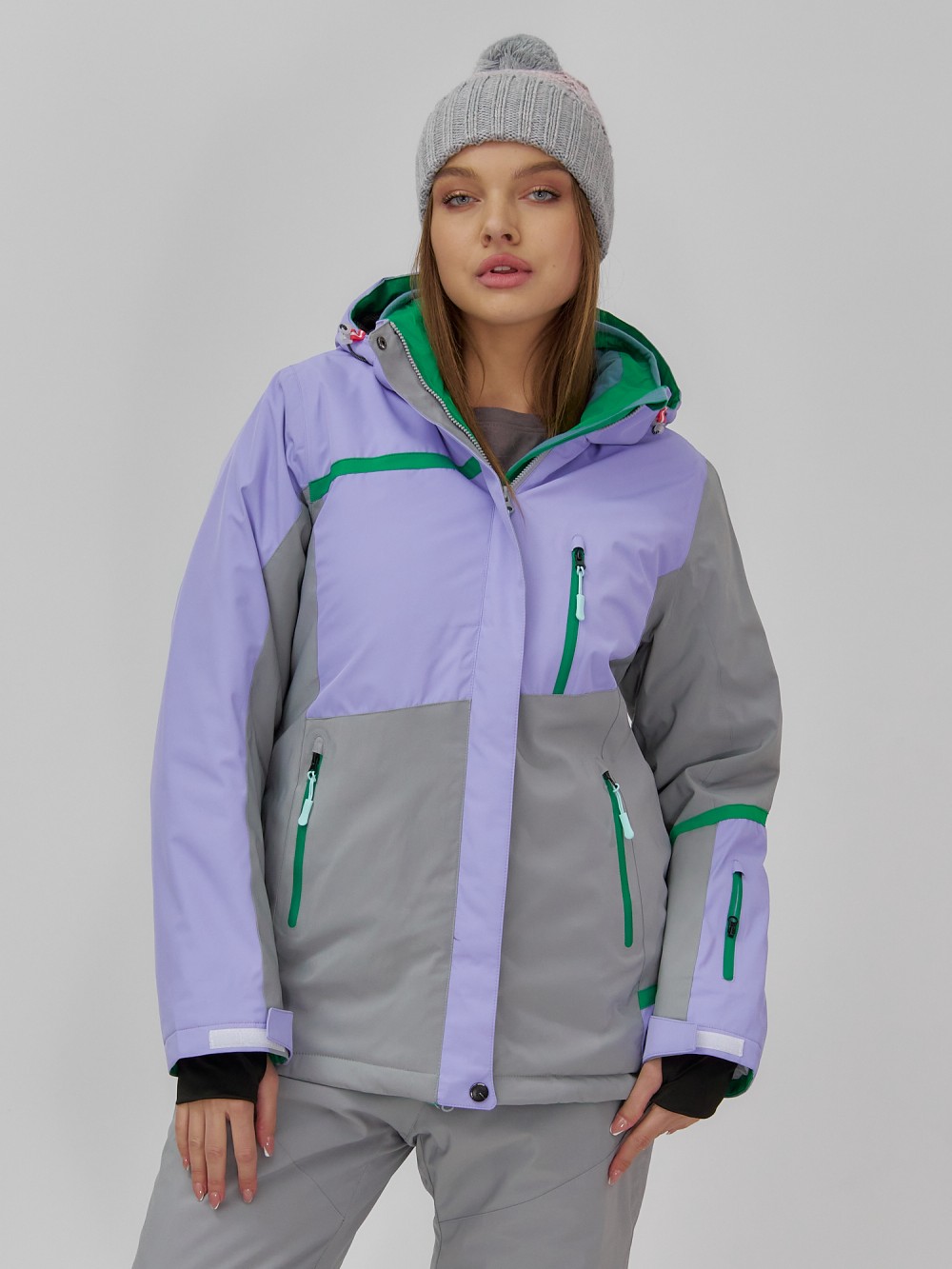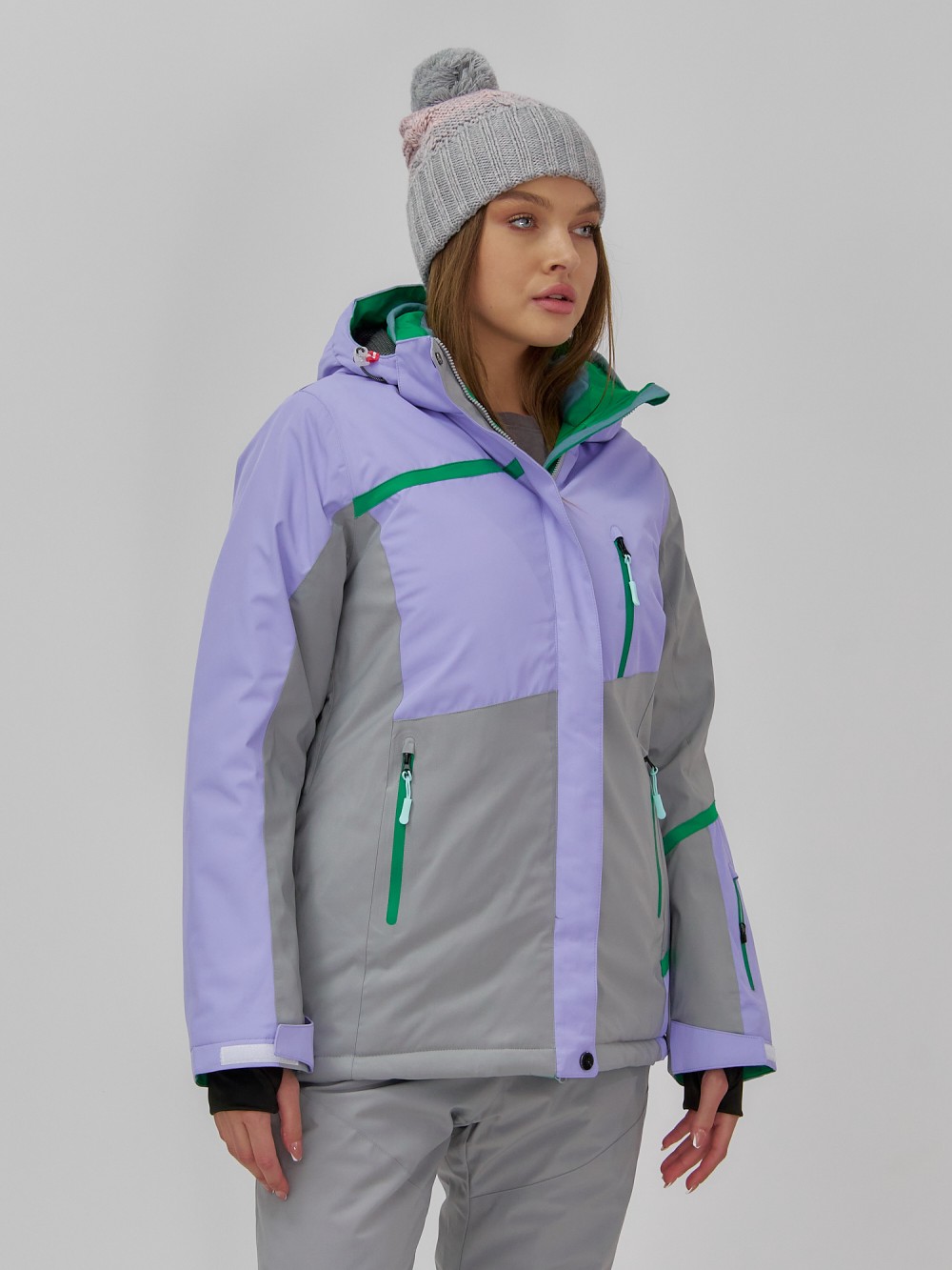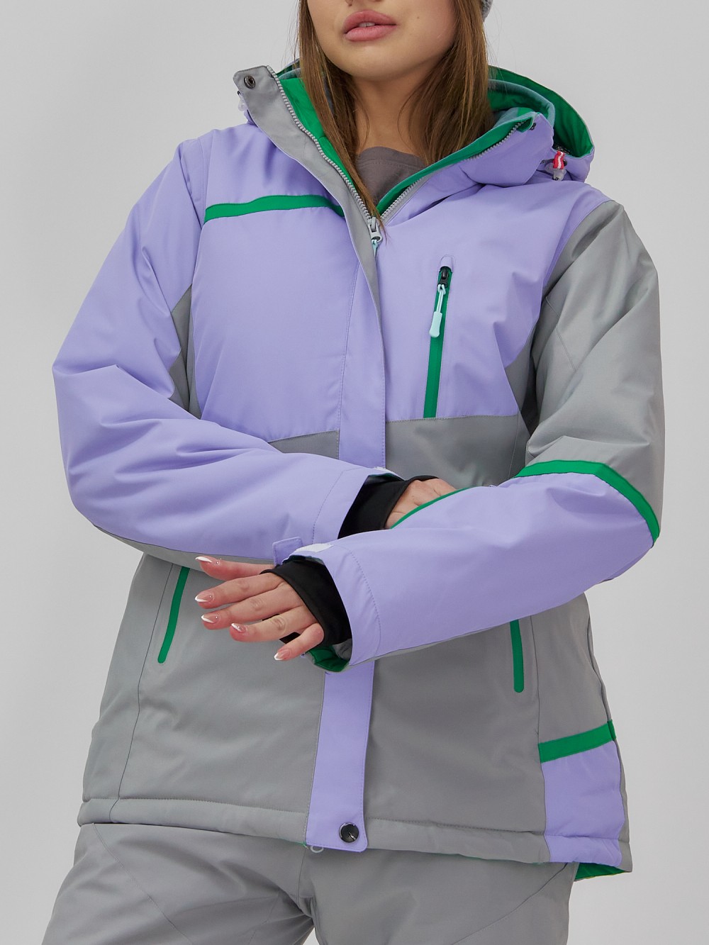 Горнолыжная куртка женская зимняя сиреневого цвета 7092Sn