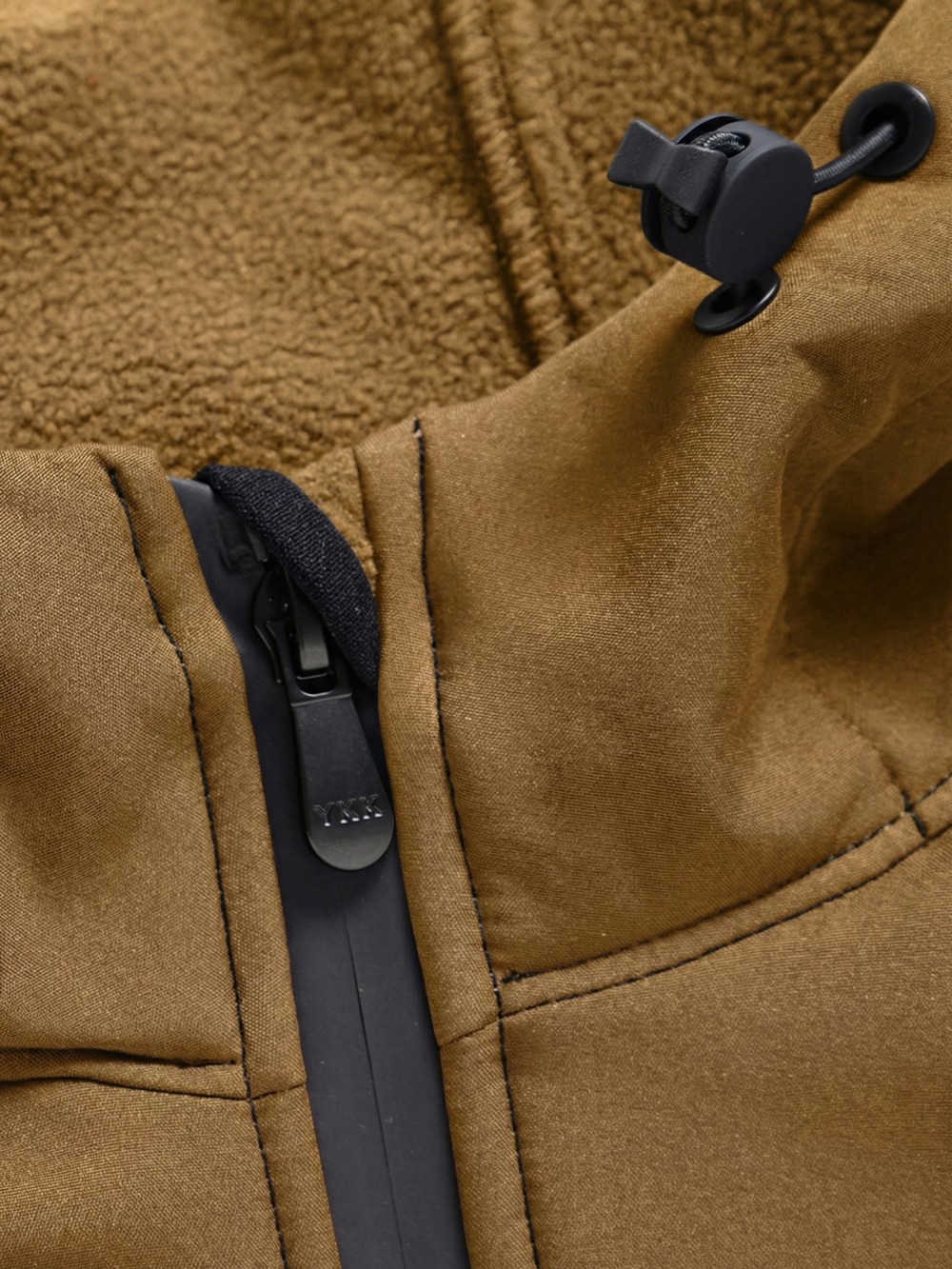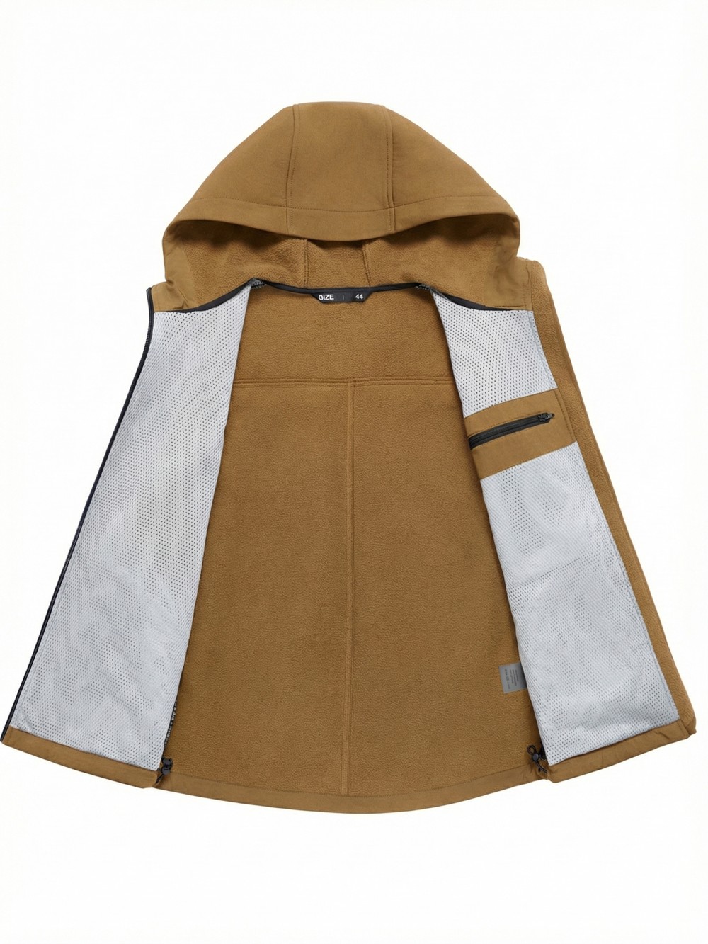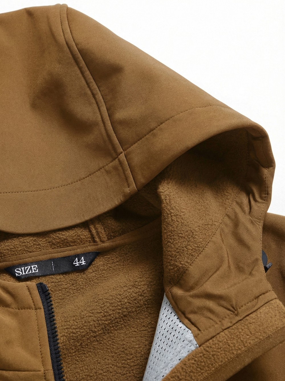 Внутри — мягкая флисовая подкладка, которая сохраняет тепло и делает куртку комфортной в прохладную погоду. Капюшон с регулировкой дополнительно защищает от ветра и осадков.