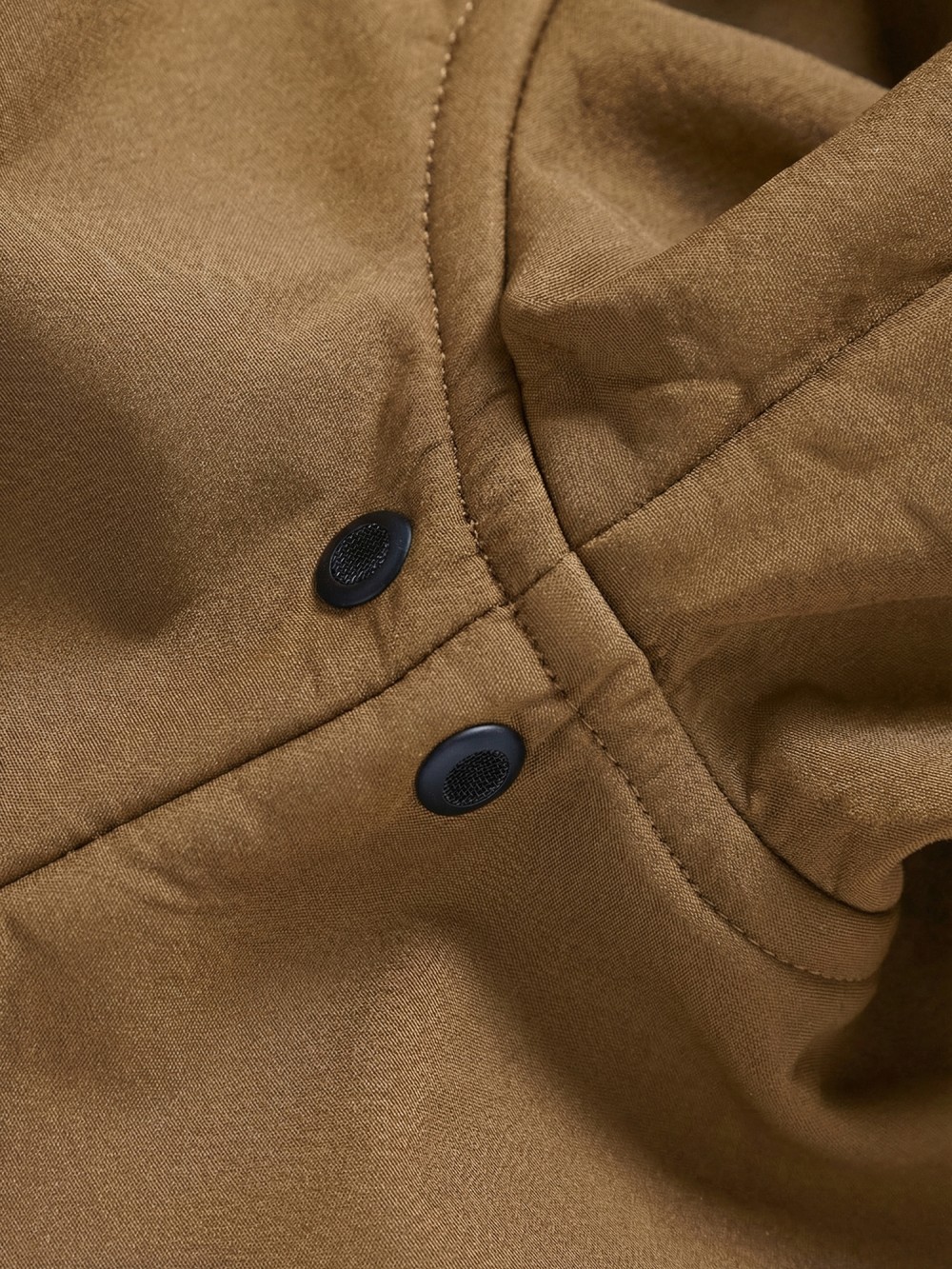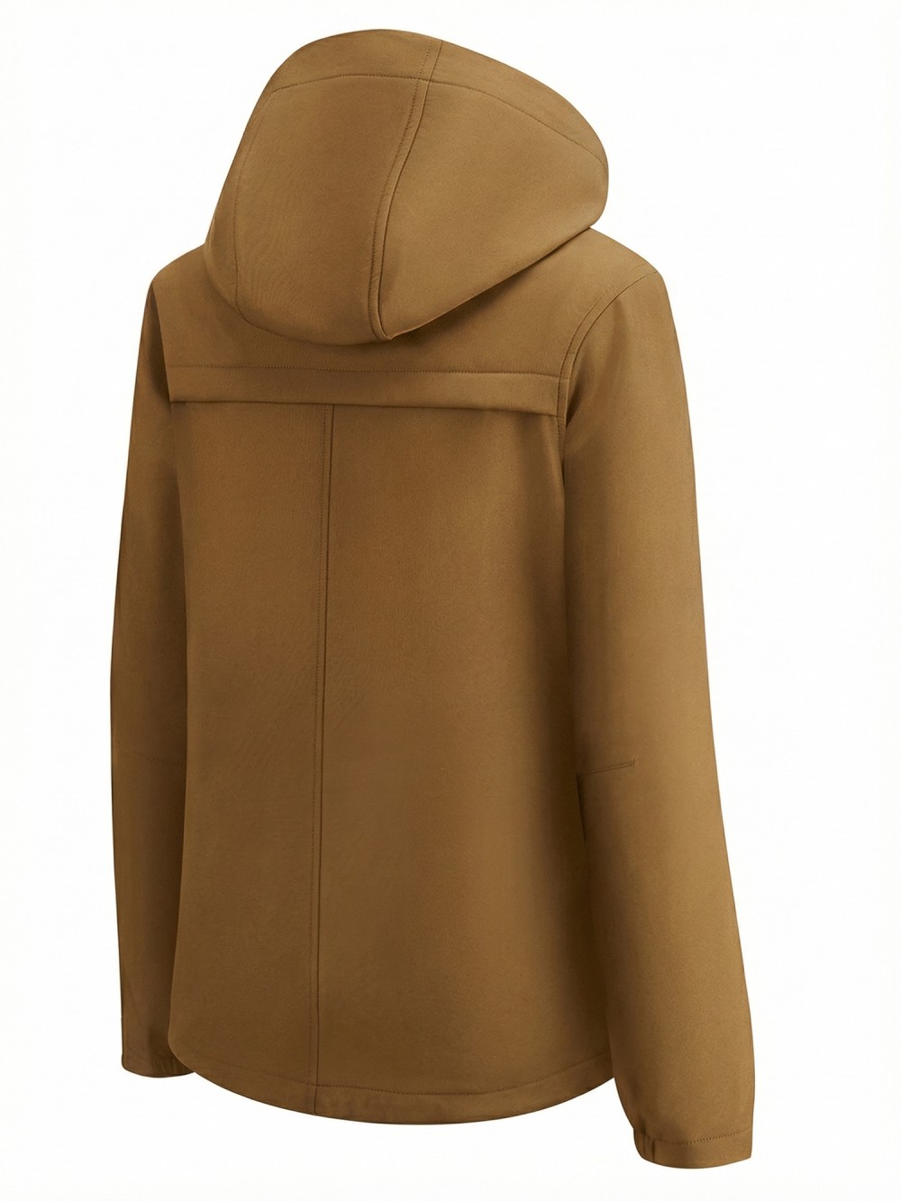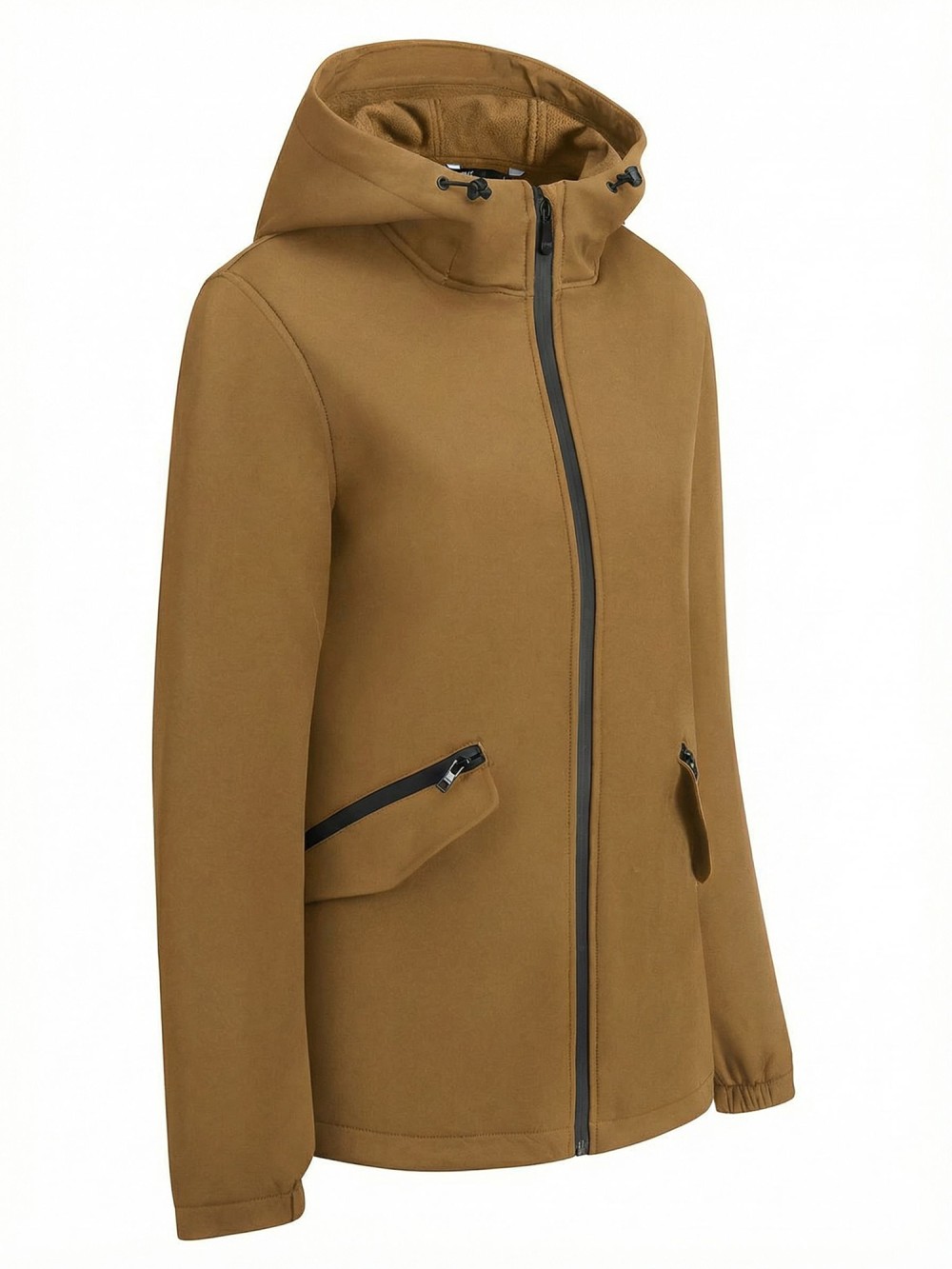Внутри — мягкая флисовая подкладка, которая сохраняет тепло и делает куртку комфортной в прохладную погоду. Капюшон с регулировкой дополнительно защищает от ветра и осадков.