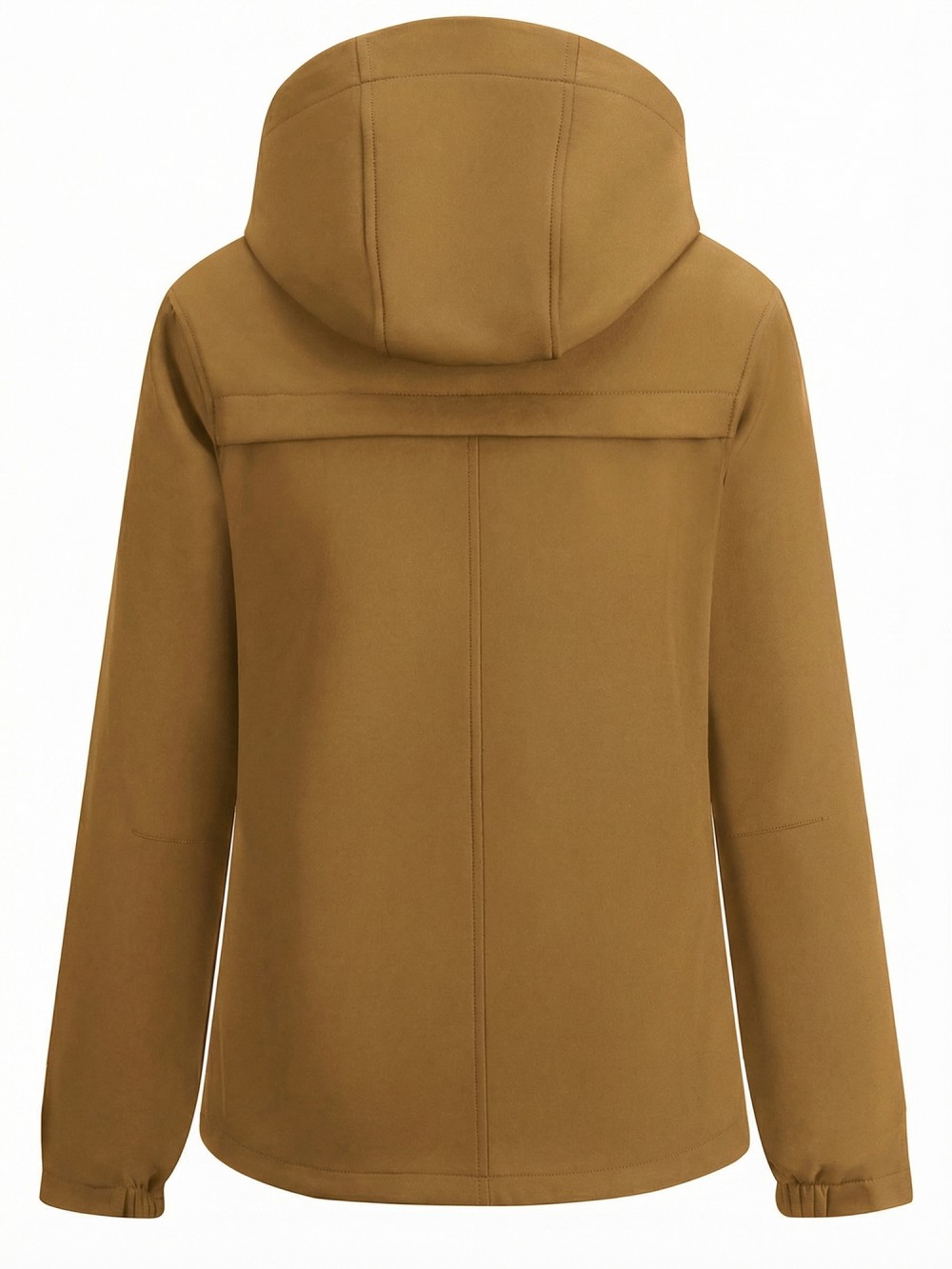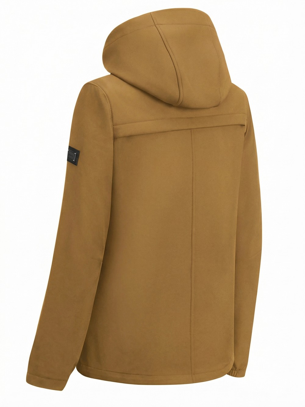 Ветровка женская софтшелл большого размера с капюшоном ветрозащитная горчичного цвета 9620_1G