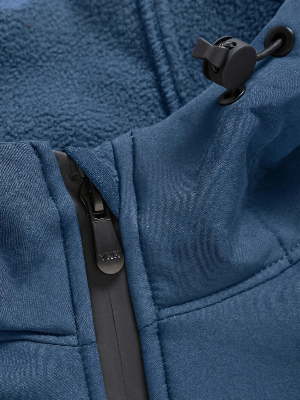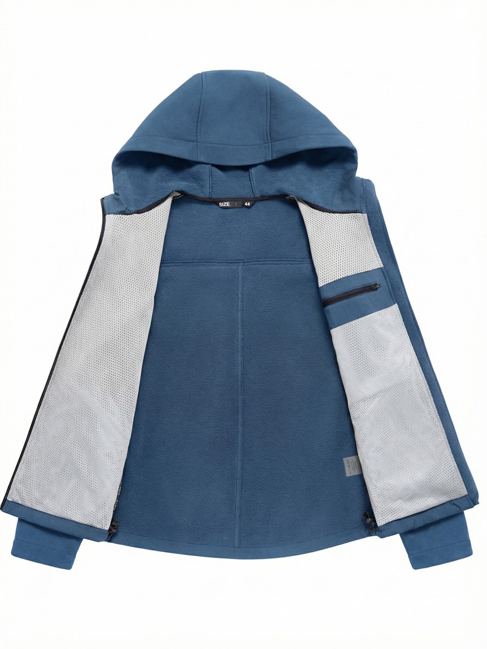 Внутри — мягкая флисовая подкладка, которая сохраняет тепло и делает куртку комфортной в прохладную погоду. Капюшон с регулировкой дополнительно защищает от ветра и осадков.