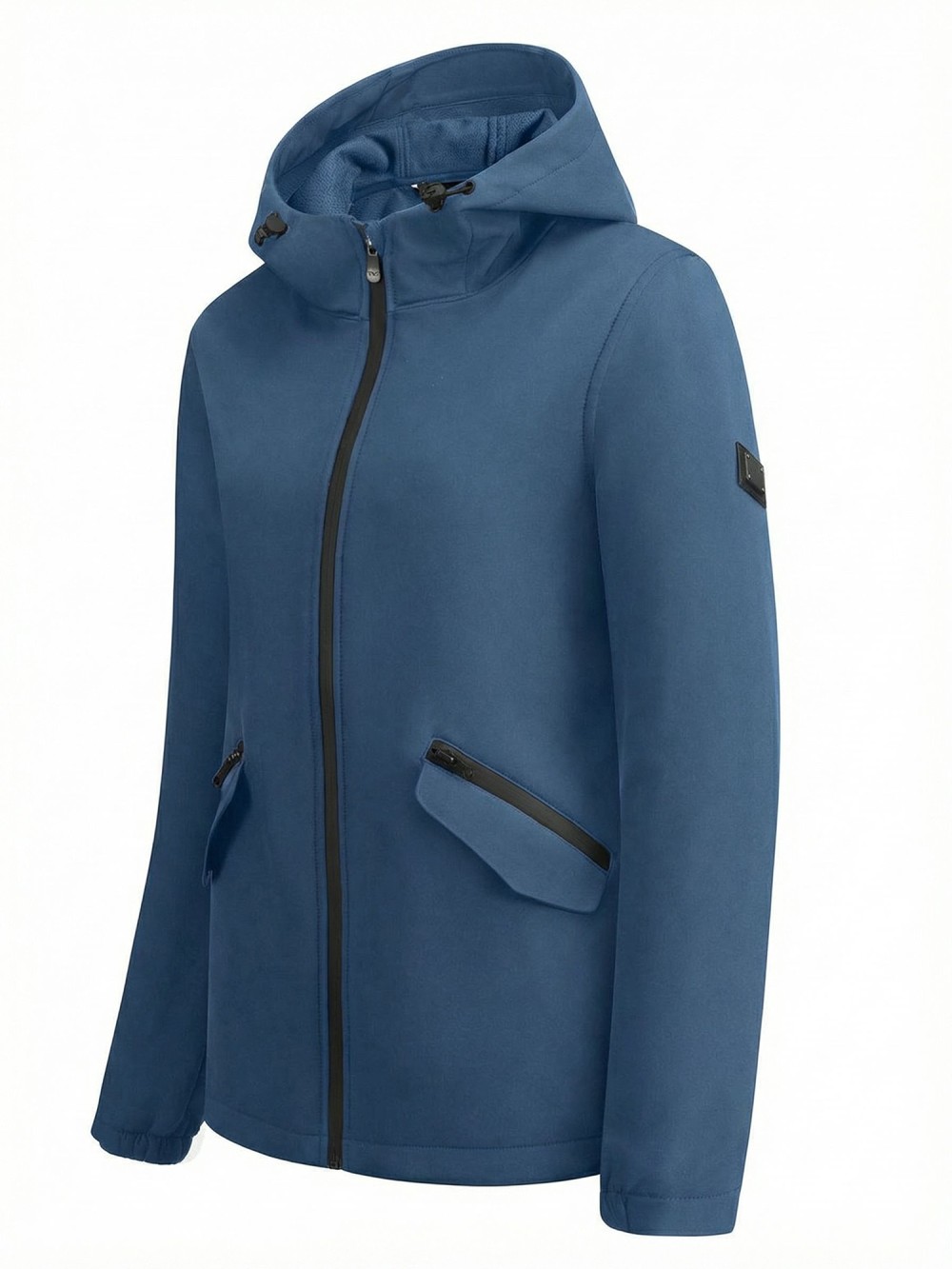Ветровка женская софтшелл большого размера с капюшоном ветрозащитная синего цвета 9620_1S