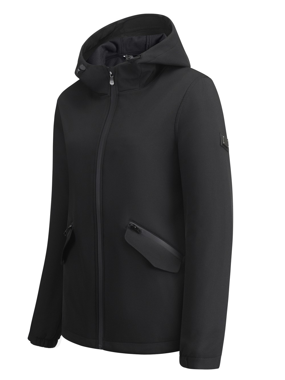 Ветровка женская софтшелл виндстоппер с капюшоном спортивная черного цвета 9612_1Ch